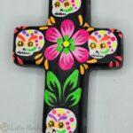 SUGAR OF SKULL DAY OF THE DEAD CERAMIC CROSS, H: 4.25 in. . THIS PRODUCT COMES IN DIFFERENT COLORS AND PATTERNS.
